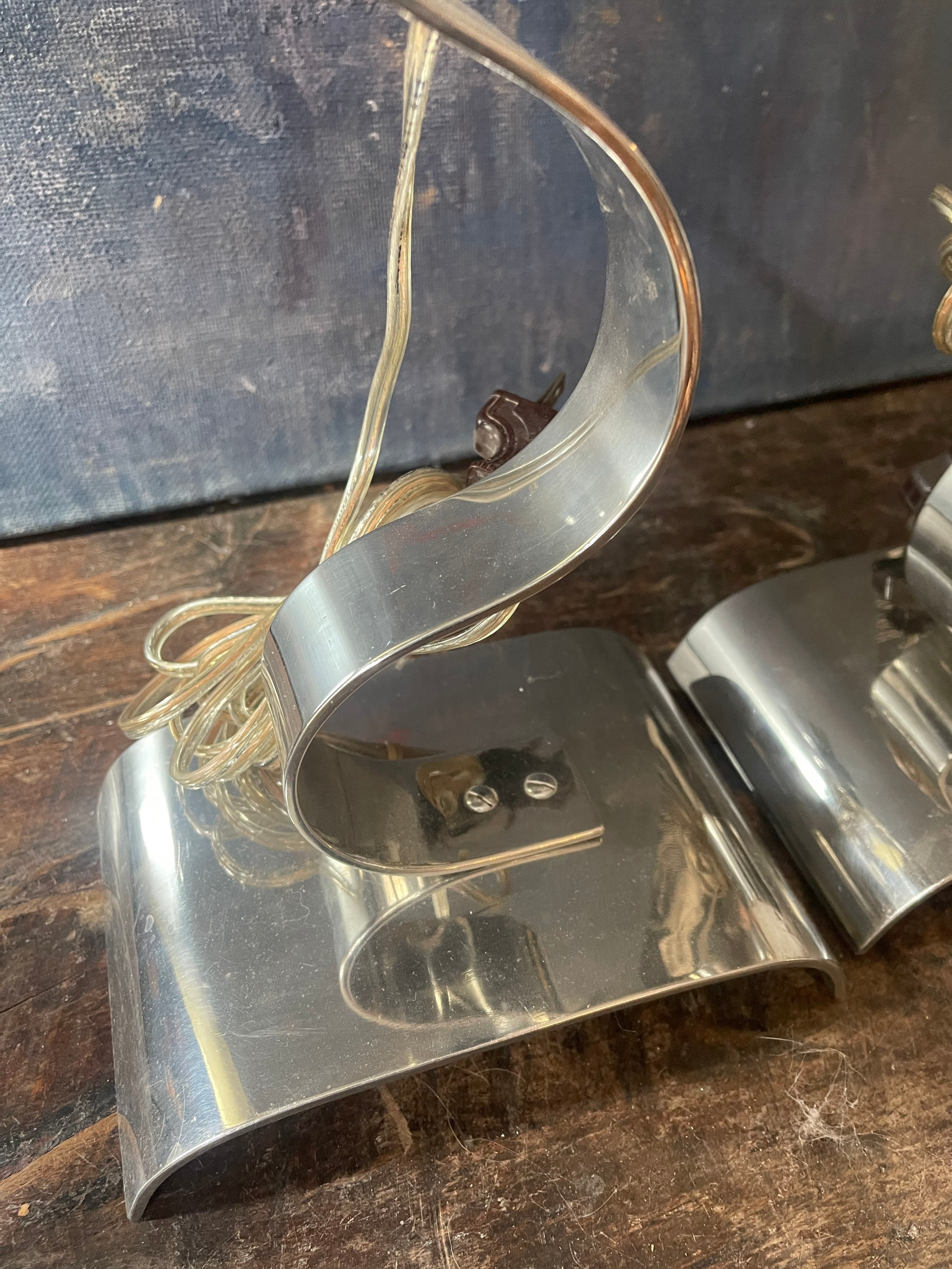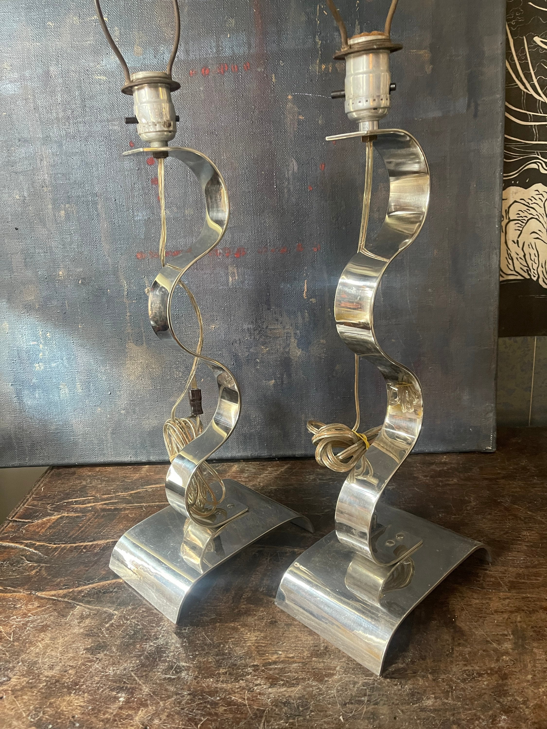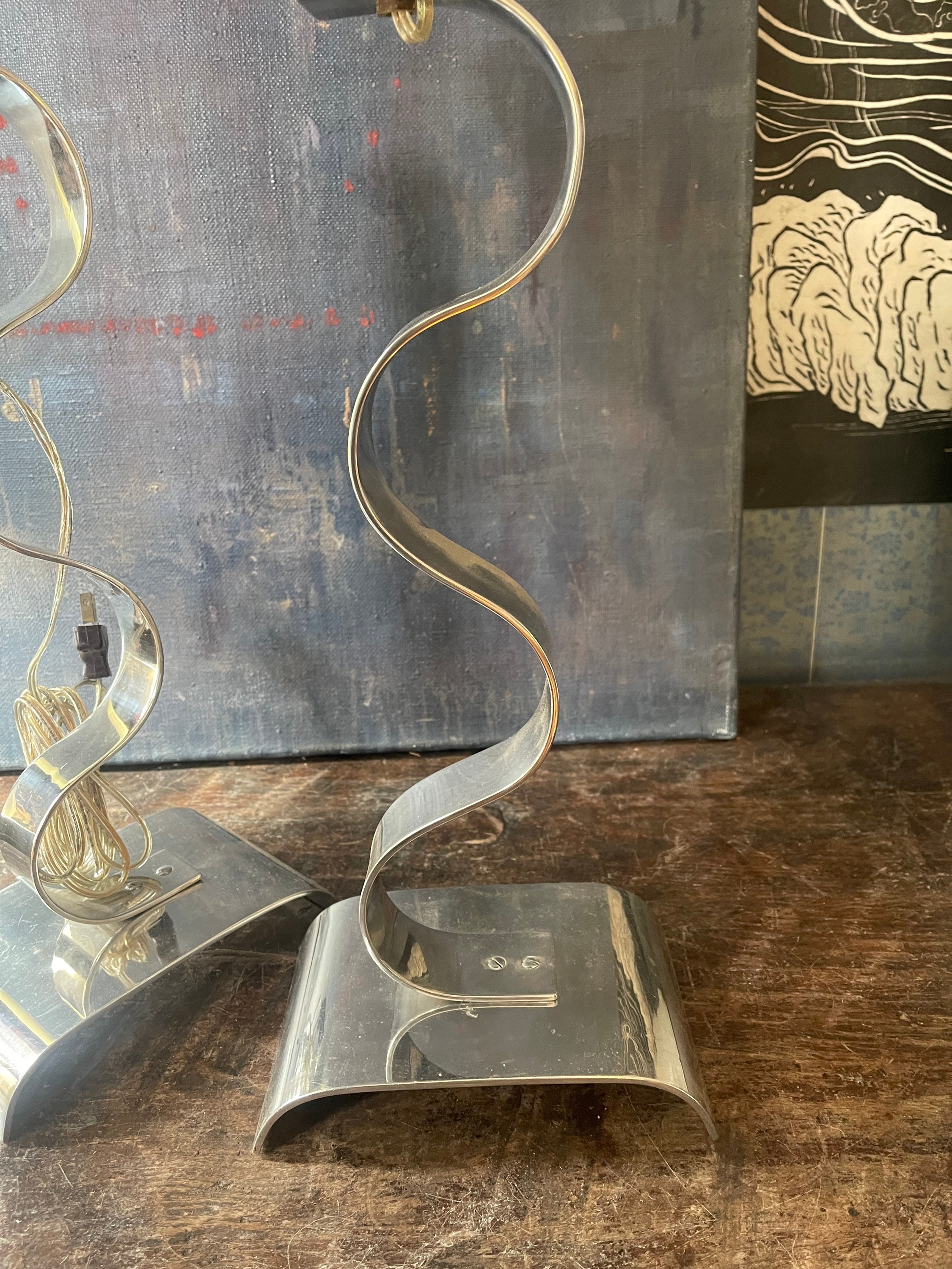 Amazing pair of old chrome mid century squiggle lamps, dating to the 1940s, they have withstood the test of time!