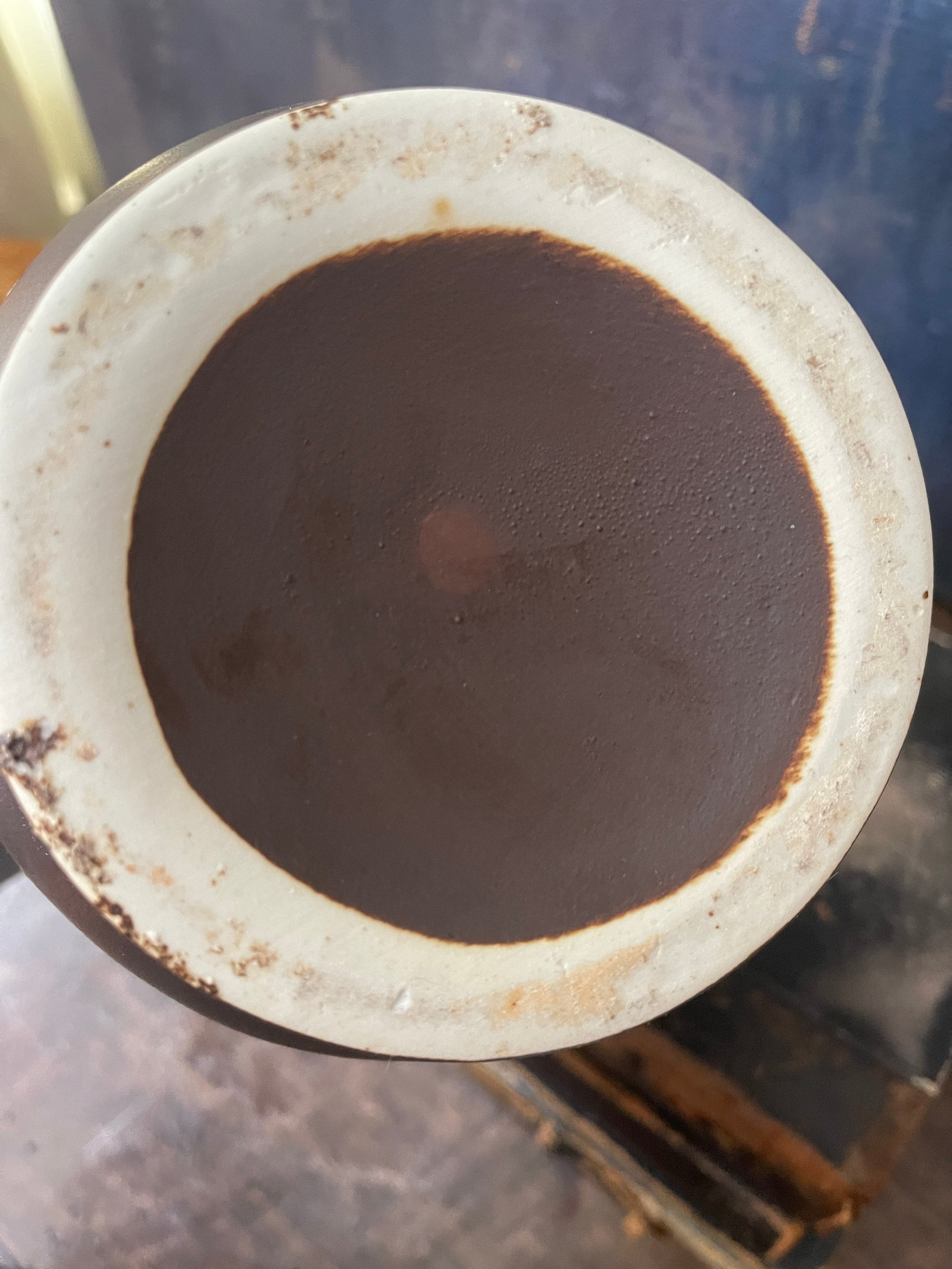 Nice condition, no chips, no cracks. Due to the matte finish of the brown glaze there is some residue from retail tag and some fingerprints possibly