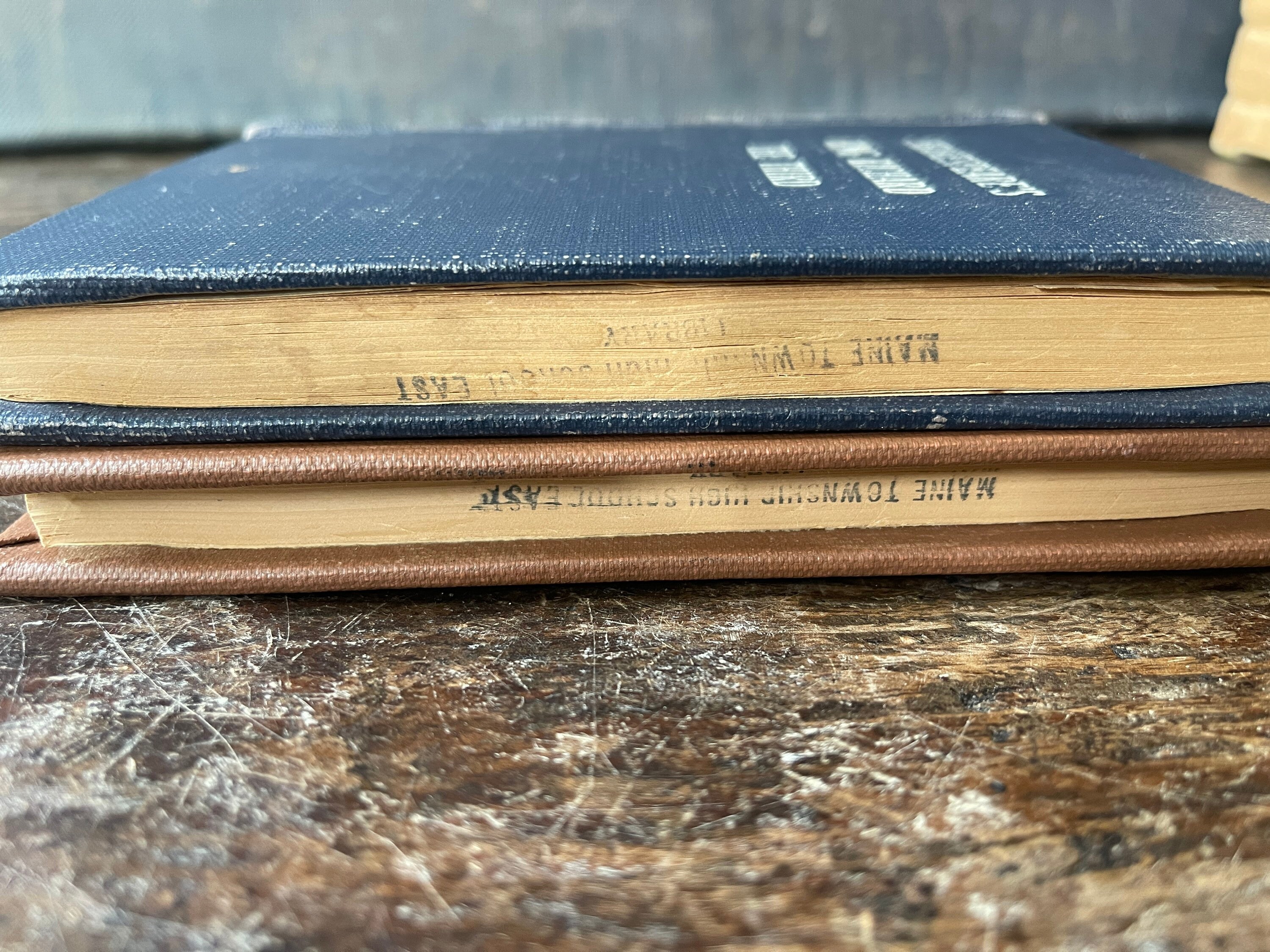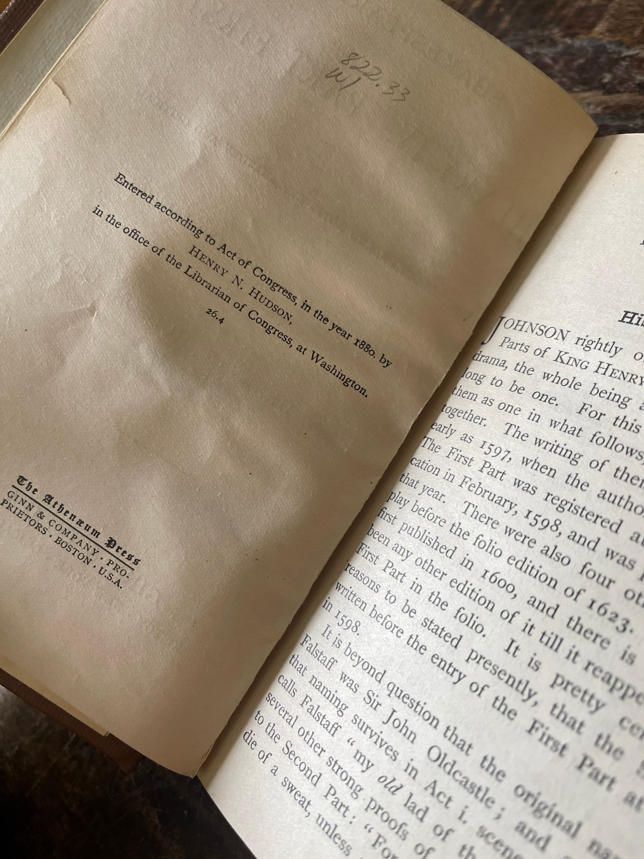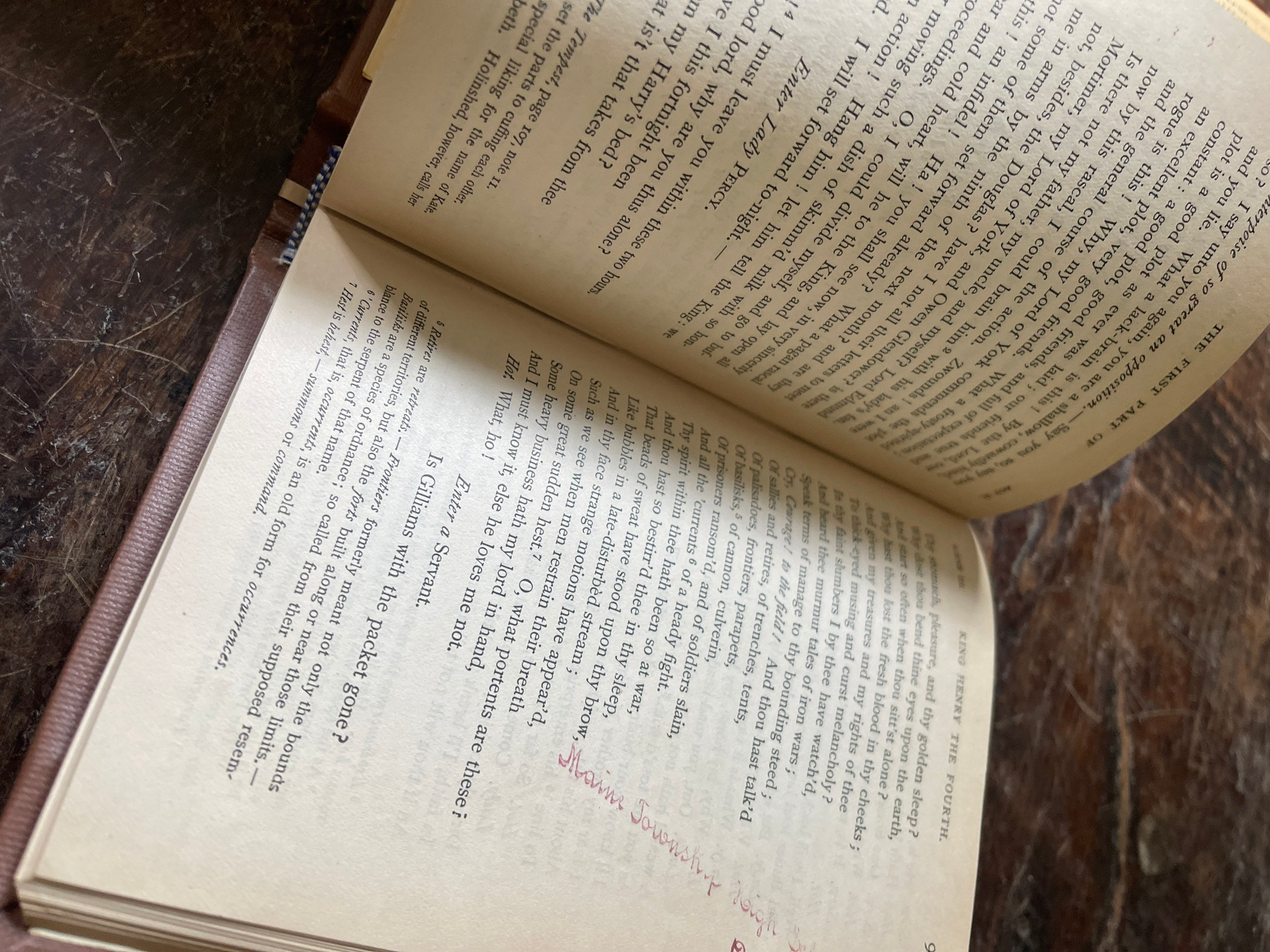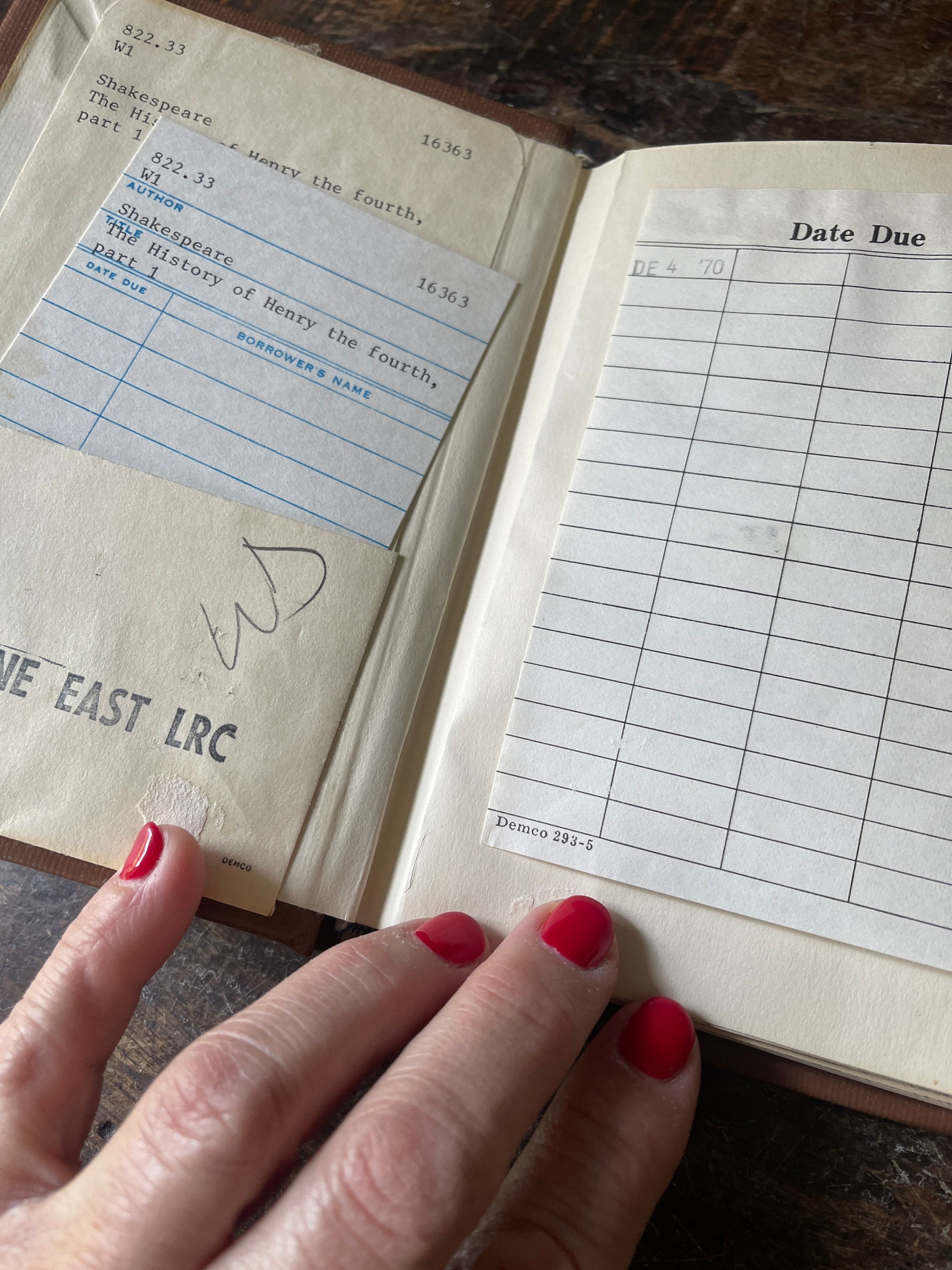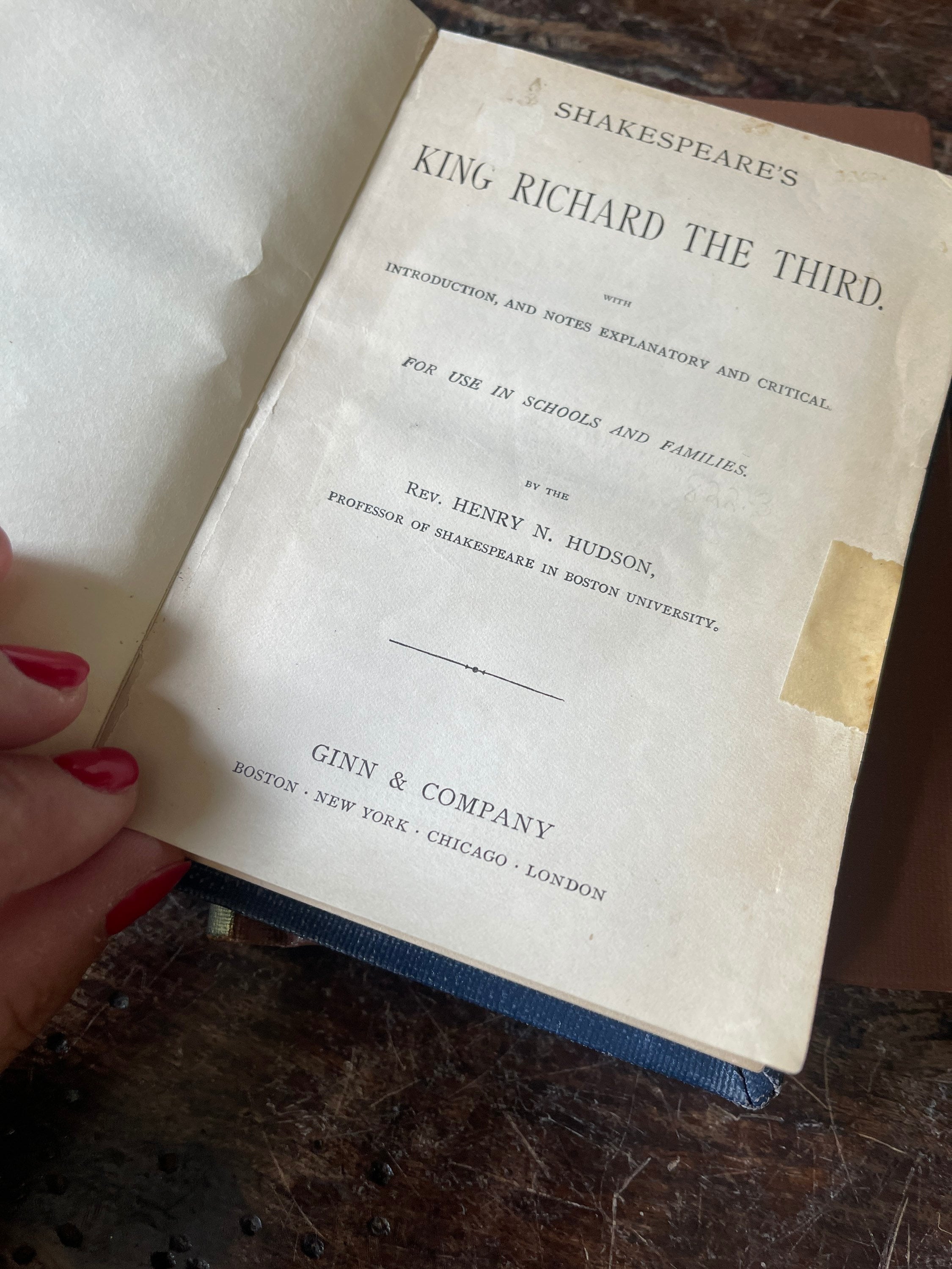 We love these old decommissioned library books, smaller in size, it makes the perfect to talk into basket or to stack upon another stack of books on the coffee table or a shelf. The king Richard book is presented in a nice navy blue that has a bit of a denim text year with that’s wear. Henry IV is a light brown and has this awesome font in a white ink down the side. Both of them have evidence of library cards from the 1970s still on the inside in the library name stamped on the sides of the book.