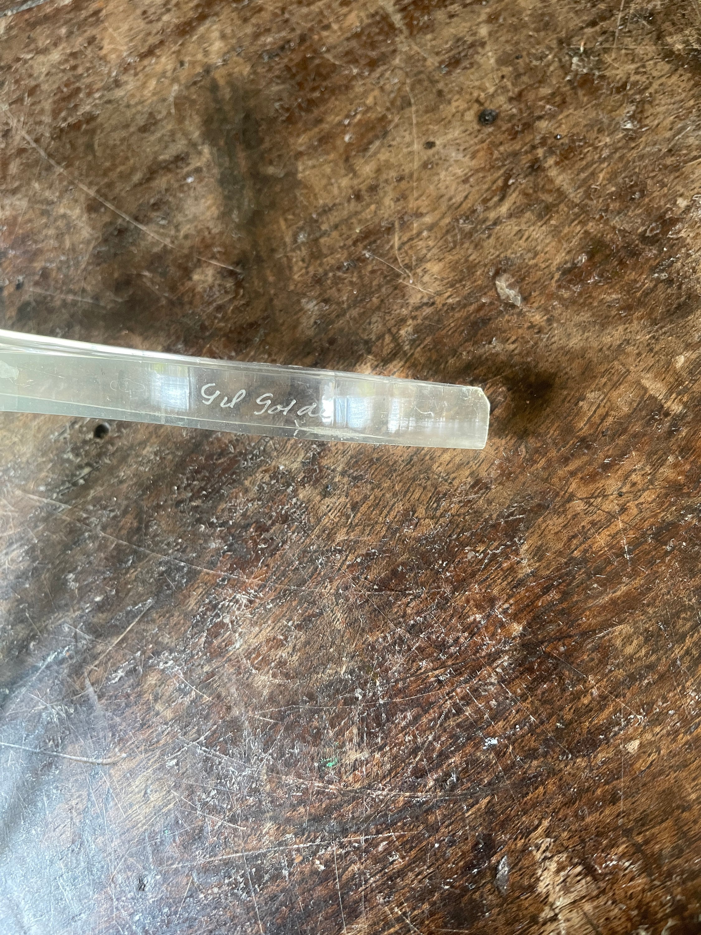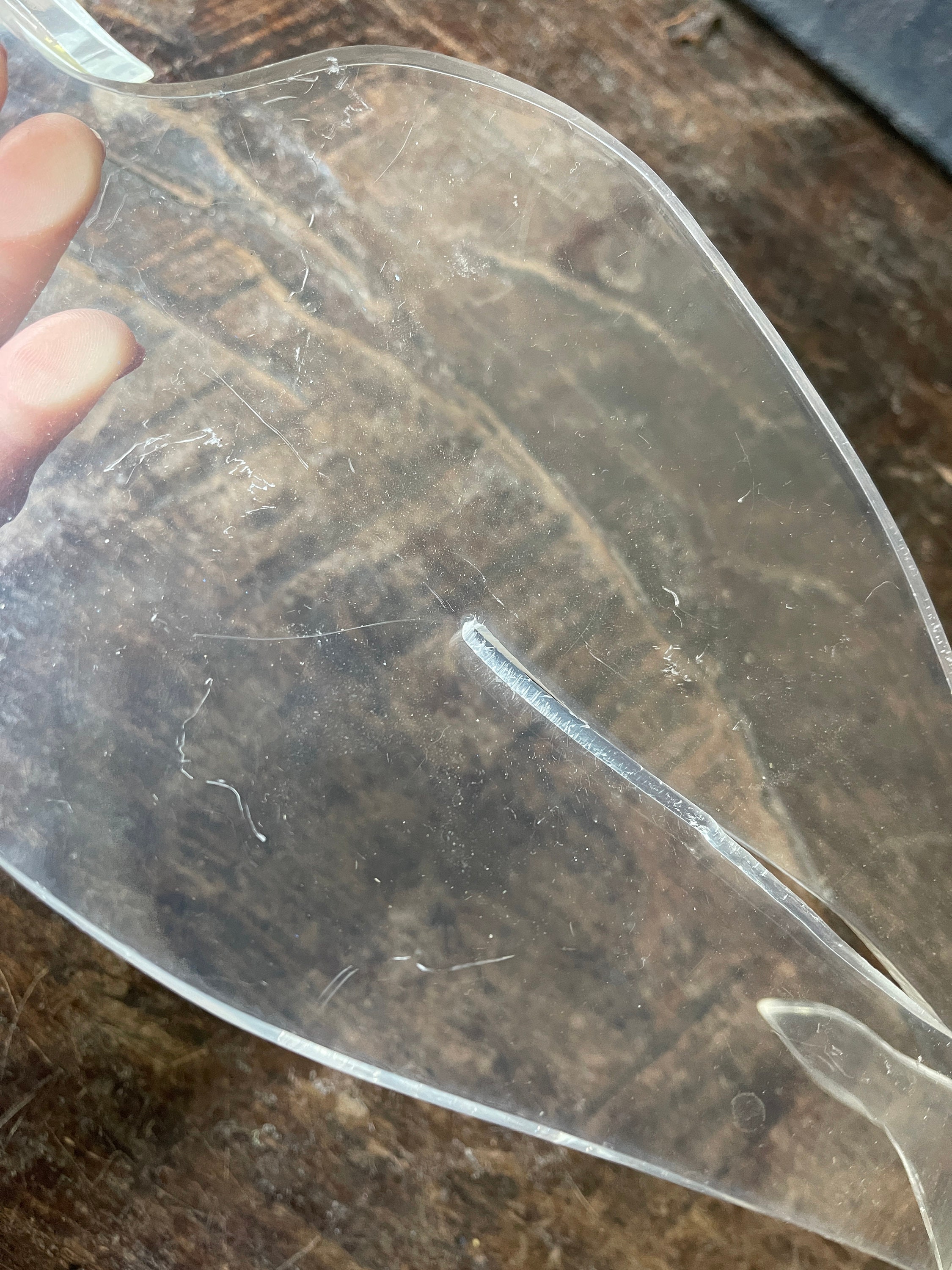 No breaks to the Lucite. Scuffs across the body to the surface of the Lucite, and some scuffs along the edges