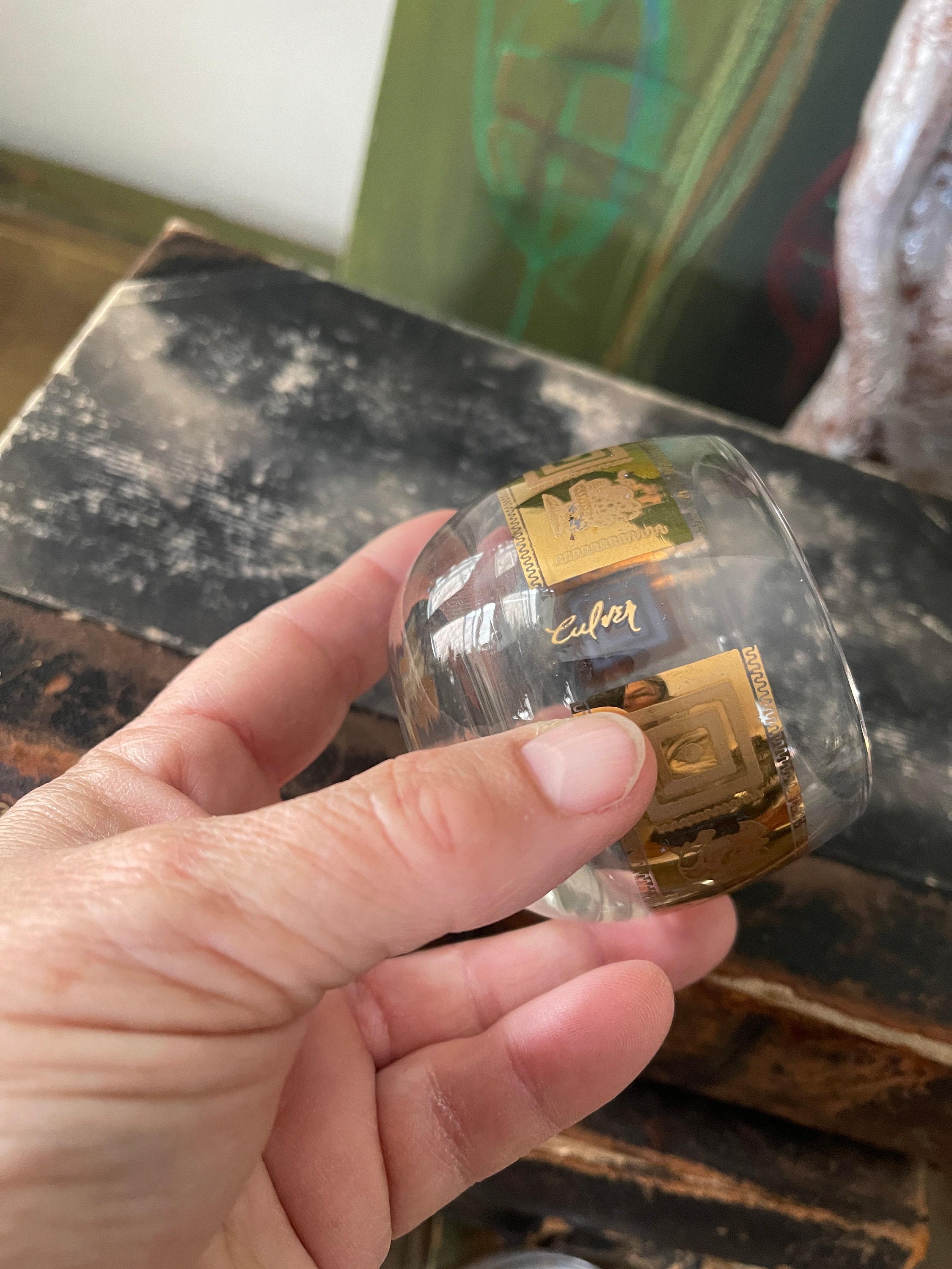 Very nice condition, no cracks, no chips. We found very little evidence of any loss of gold, these were well taken care of, and likely not used often.